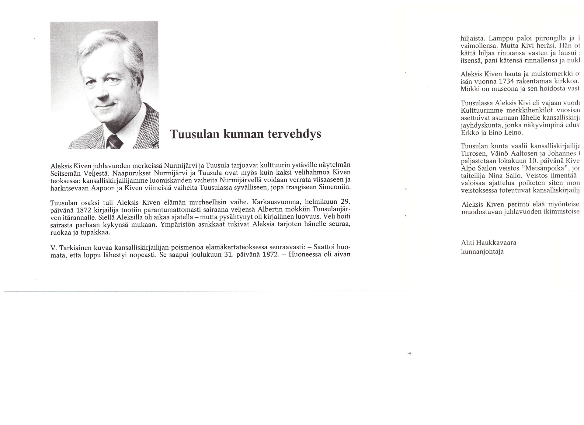 Matti Mattila Kivi-juhlien puheenjohtaja 1984